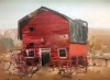Refining the details in the texture of the barn structure. I had to combine several reference photos for this one, and edited out a tree which is in front of the barn. The magic of painting.